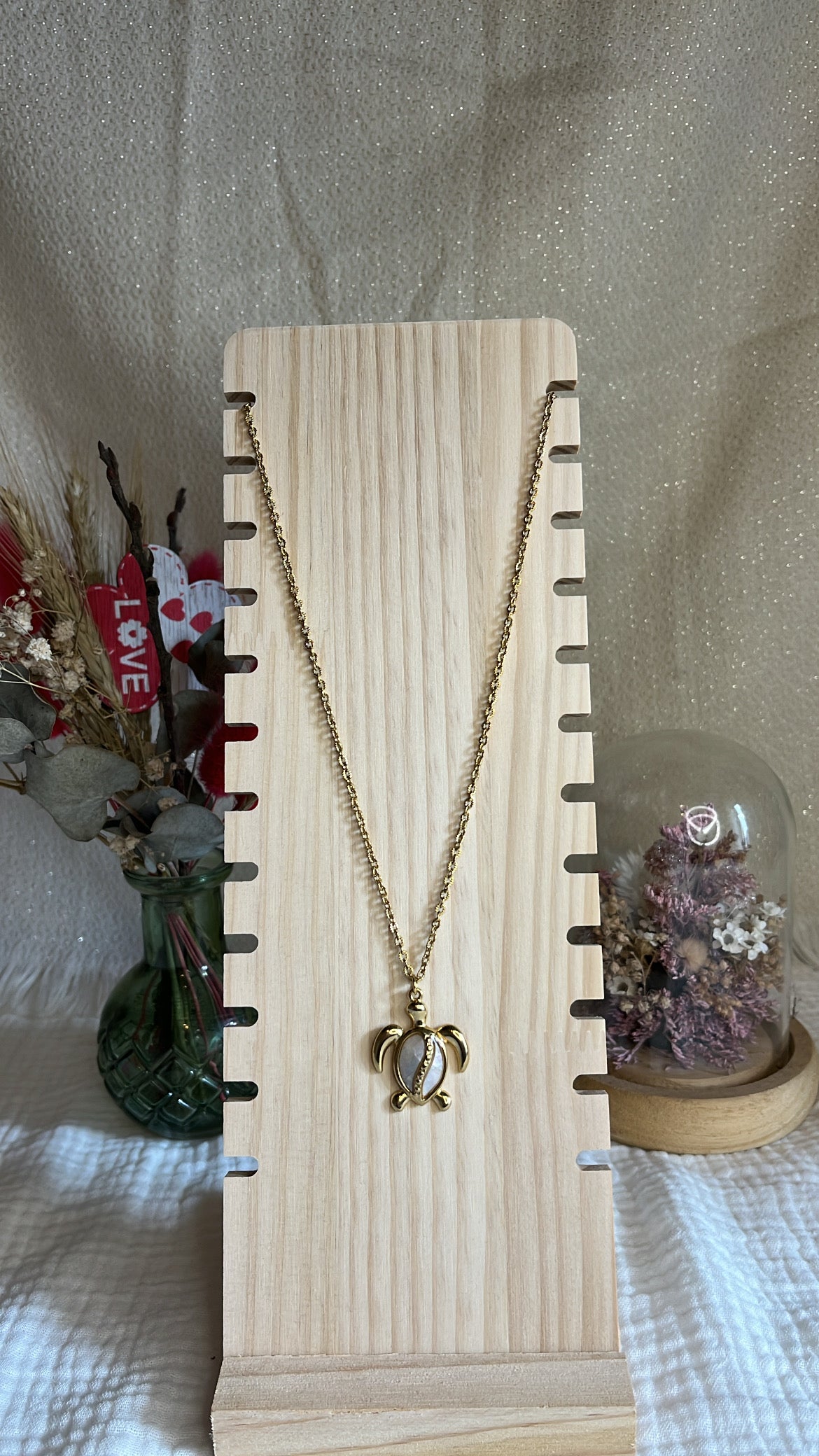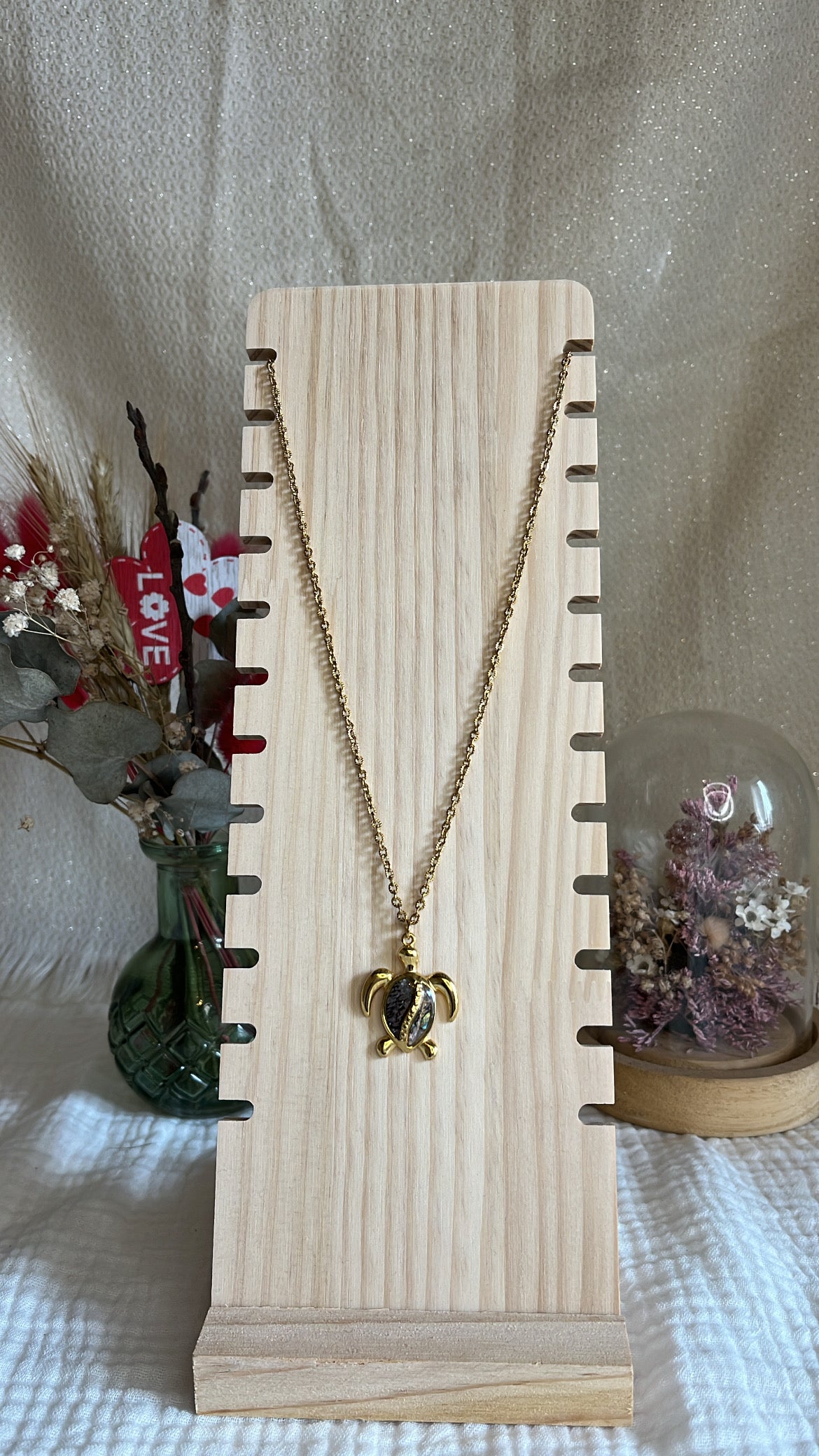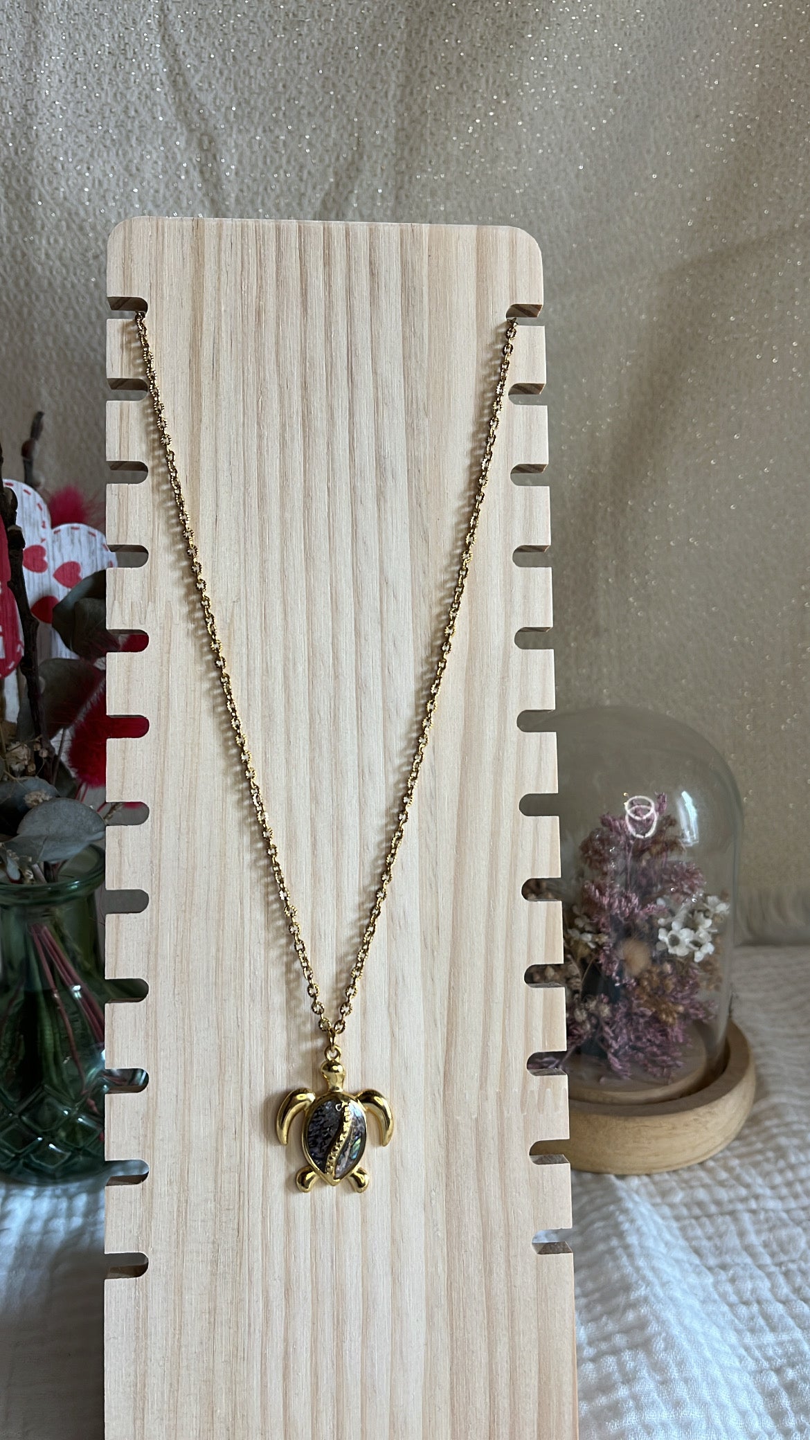 Symbole de sagesse et de protection, ce collier en acier inoxydable doré est orné d’un pendentif tortue . À la fois délicat et intemporel, il apporte une touche solaire et symbolique à toutes vos tenues. Résistant à l’eau et au quotidien, ce bijou conserve son éclat au fil du temps et se porte aussi bien seul qu’en accumulation.